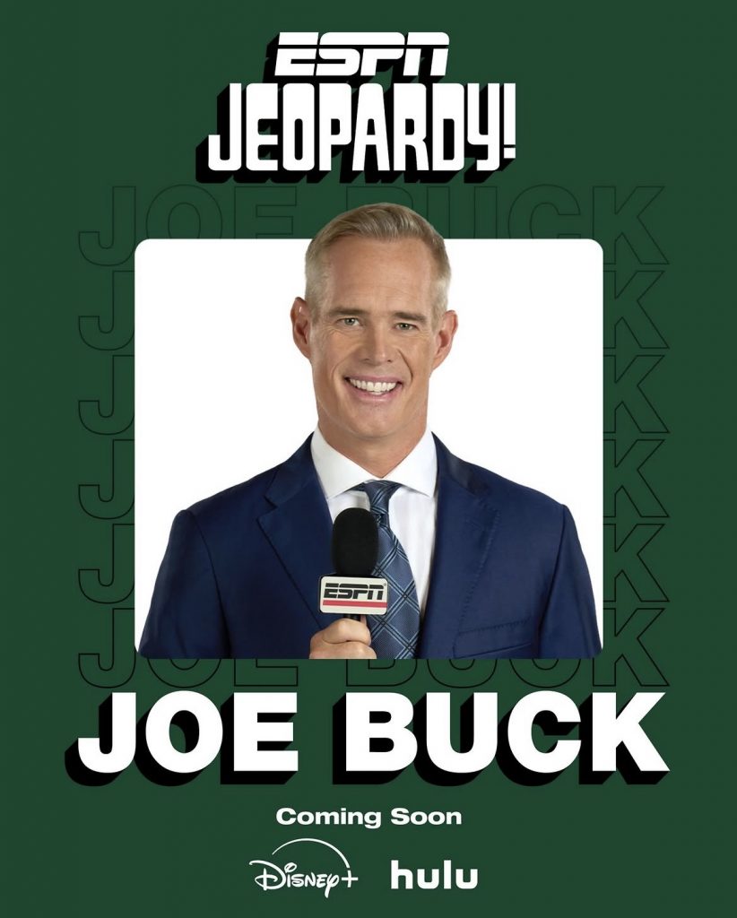 With the upcoming premiere of ESPN Jeopardy!, Joe Buck will be returning to the franchise for the first time since 2021. He previously appeared as a guest host on the syndicated version of Jeopardy! following the death of Alex Trebek. He hosted five episodes in the middle of Matt Amodio’s 38-game winning streak.
